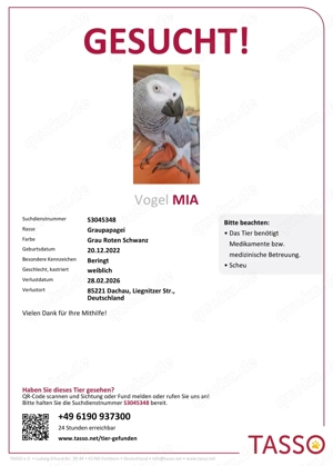 Papagei Graupapagei entflogen Dachau