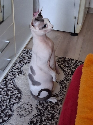 Ich biete hier meinen Sphynx Kater mit wunderschöne blaue Augen und Tasthaare zum decken an. Er ist am 8.01.2024 geboren bei uns und hat mehrfache Deckerfahrung, bringt wunderschöne Kitten in schöne Farben. (Bilder einiger seiner Kitten in der Galarie) :) Bei weitere Fragen melden sie sich gerne. Liebe ...
