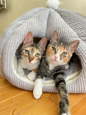Die Mädchen sind gesund, geimpft, gechipt und bereits sterilisiert. Sie sind stubenrein, sehr aktiv und verspielt echte kleine Wirbelwinde, dabei aber sanft und verschmust, perfekte Hauskatzen.