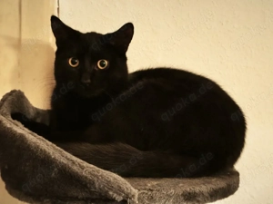 Schwarzer EKH Kater sucht ein neues Zuhause. Er ist stubenrein, kuschelt sehr gerne und viel und ist sehr neugierig. Geboren August 2025