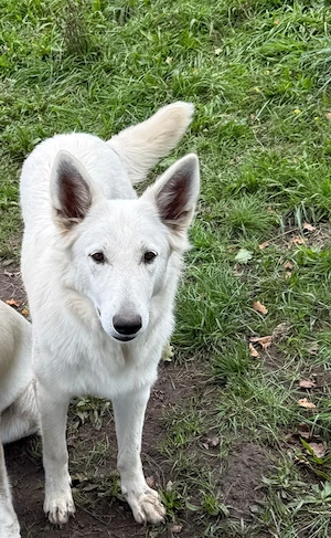 Ich verschenke hier mein weiße Schweizer schäferhund sie heißt daisy und ist am 29.08.24 geboren leider muss ich sie abgegeben aufgrund Zeitmangel und ich werde umziehen aus mein haus sie ist nicht stubenrein da sie bei uns auf denn Hof lebt und das leben im Haus nicht gewöhnt ist wer Daisy ein liebes ...