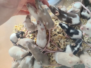Junge Farbmäuse, weiblich und männlich verschiedene Farben
