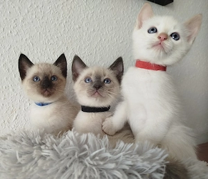 Wunderschöne Siamkatzen-Babys in den Farben Seal Point, Blue Point und Red Point suchen ein liebevolles Zuhause! Unsere kleinen Lieblinge sind ab dem 24. April bereit zum Auszug! Sie sind sehr neugierig, verspielt und verschmust. Alle sind gesund und stubenrein (an das Katzenklo gewöhnt). Sie fressen ...
