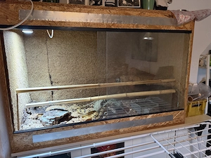 Hallo zusammen, hier suche ich ein neues, liebevolles Zuhause für meine Boa (weiblich). Sie ist rund zweieinhalb Jahre alt (mit Papieren) und misst etwa 120 cm. Alle zwei Wochen bekommt sie zwei Ratten. Das Terrarium gehört ebenfalls dazu ( Breite ca. 125 cm, Höhe 85 cm, Tiefe 52 cm ) inklusive Heizungs- ...