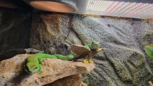 Hallo, ich habe zwei Große Madagaskar Taggeckos ( Phelsuma grandis) abzugeben. Beide sind ca. 11 Monate alt und fast ausgewachsen, ca. 20cm groß . Mit Herkunftsnachweis vom Züchter. Wir schätzen das es zwei Weibchen sind. Vertragen sich sehr gut, sind fit und häuten sich regelmäßig. Gefüttert werden ...