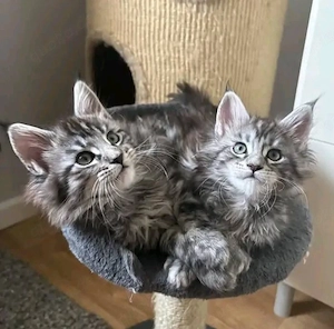 5 Maine Coon Kitten haben am 23.12.2025 das Licht der Welt erblickt. Allen sind wohlauf. Sie sind bereits zwölf Wochen alt und somit alt genug, um in ein neues Zuhause auszuziehen. Es ist noch ein Mädchen Black smoke frei. 4 Kitten haben ein neues glückliches Zuhause gefunden. Die Kitten sind an Alltagsgeräusche ...