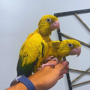 Wir sind stolz darauf, ein wunderschönes Paar Goldnandayas anbieten zu können ein Männchen und ein Weibchen , die ein liebevolles und verantwortungsbewusstes Zuhause suchen. Diese Sittiche sind bekannt für ihr auffälliges goldgelbes Gefieder mit leuchtend grünen Akzenten, ihr anhängliches Wesen ...