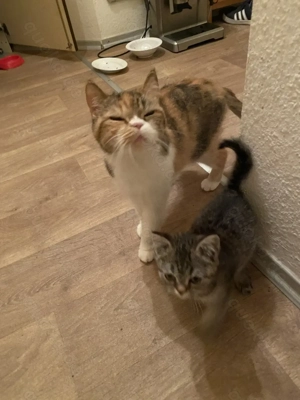 Hier suchen eine Katzenmutter und ihr drei Monate altes Kätzchen ein neues Zuhause. Die Mutter ist dreieinhalb Jahre alt. Das Kätzchen kam mit einer Fußfehlbildung zur Welt, die manchmal zu Gleichgewichtsproblemen führt. Trotzdem spielt, rennt, frisst und ist stubenrein. Es frisst sowohl Trocken- als ...