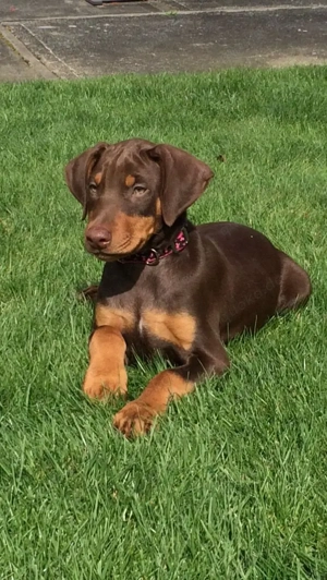 Winzige Dobermann-Hündin, kurzes Haar