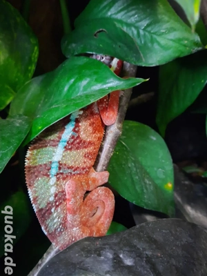 Hallo zusammen, da die Art nix für mich ist, darf er ausziehen. Männliches Pantherchamäleon der Lokalform Ambilobe. Frisst aus der Hand, ist ansonsten aber eher scheu. Hab aber auch nie daran gearbeitet und ihn in Ruhe gelassen. Hat selbstverständlich immer UV-Licht und Vitamine bekommen. Habe ihn jetzt ...