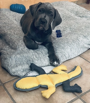 Cane Corso Rüde (Blue Line) zur liebevollen Vermittlung Unser Cane Corso Rüde, geboren am 2. November, sucht ein liebevolles und verantwortungsbewusstes Zuhause. Er besticht durch seine edle grau-blaue Fellfarbe sowie seine ausdrucksstarken blau-grünen Augen. Der Rüde ist altersgerecht geimpft, gesund, ...