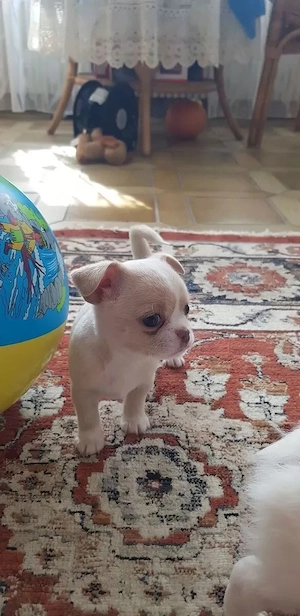Sehr schöne, reinrassige Chihuahua Welpen, 8 Wochen, noch ein Männchen in weiß langhaar und ein Weibchen in creme kufzhaar frei, beide Eltern(Rumpfhöhe 22cm, Mama wiegt 3,5 und Papa 2,9 kg) leben bei uns in der Familie und sind bei der Besichtigung dabei. Die Kleinen sind absolut lieb, anhänglich, ...