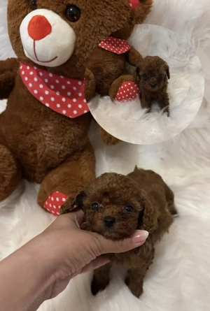 hallo, ich verkaufe hier meine Tea Cup Toy Pudel Welpen, die momentan zweieinhalb Monate ist.Papa ist Bildern zu sehen der Nuni ( 11 Monate ) :) Sie können gerne auch vorbeikommen und vor Ort sich die Welpe anschauen.