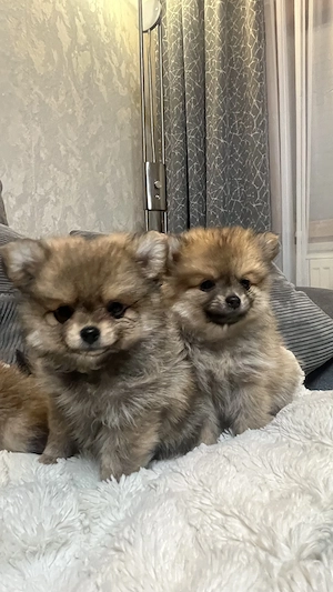 Zwei bezaubernde Pomeranian (Zwergspitz) Welpen suchen ein liebevolles Zuhause! Unsere süßen Pomeranian Welpen sind am 21. Januar 2026 geboren. Insgesamt waren es vier Welpen zwei haben bereits ein neues Zuhause gefunden, zwei kleine Mädchen sind noch verfügbar. Die Welpen sind: verspielt, verschmust ...