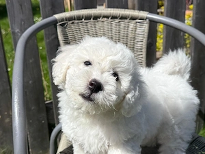 Unsere zwei süßen Bichon Frisé Jungen suchen ein liebevolles Zuhause Die kleinen sind am 23.02.2026 geboren und entwickeln sich prächtig. Sie sind verspielt, neugierig und wachsen bei uns mitten in der Familie mit Kindern auf, wodurch sie bestens sozialisiert sind. Die Welpen wurden bereits tierärztlich ...
