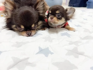 Allerliebste Chihuahuawelpen in langhaar ,beides Rüden, in allerbeste Hände zu verkaufen. Wir können ab dem 6.3. ausziehen . Dann sind wir altersgerecht geimpft, gechipt und natürlich mehrfach entwurmt. Wir erhalten einen blauen EU-Impfausweis. Eine kleine Erstausstattung liegt auch schon bereit. Futter, ...