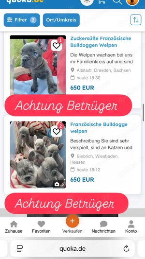 Französische Bulldogge Betrüger Achtung