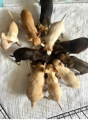Hallo, wir freuen uns, euch vier unserer vier zuckersüßen Welpen vorzustellen, die am geboren 3 Weibchen und 1 Männchen Über die Eltern: Mama Eine reinrassige Kurzhaar-Chihuahua-Dame verspielt, verschmust und liebevoll. Sie wiegt 1,6 kg und lebt bei uns. Papa Ein reinrassiger Kurzhaar-Chihuahua ...