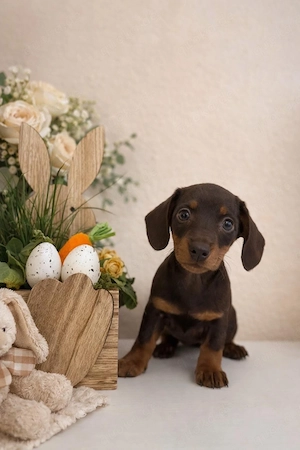 Unsere Zwergdackel-Welpen, geboren am 23.02.2026, suchen ein liebevolles Zuhause. Ab dem 26.04. dürfen sie ausziehen. Zu diesem Zeitpunkt sind sie geimpft, gechipt und mehrfach entwurmt. Die Kleinen wachsen mitten im Familienleben auf, kennen Alltagsgeräusche und haben bereits Kontakt zu anderen Hunden. ...