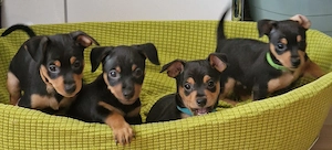 Unsere 5 zuckersüßen Zwergpinscher Welpen (Rüden) sind am 04.03. geboren und suchen bald ein liebevolles Zuhause. Die Kleinen wachsen mitten in der Familie auf, sind bestens sozialisiert, verspielt, neugierig und sehr menschenbezogen. Zwergpinscher sind bekannt für ihr freundliches, aktives Wesen ...