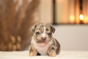 01.05.2026 ABGABEBEREIT Anfang März 2026 hat unsere Hündin Goldline Bullies Amnesia einen wunderschönen und gesunden Wurf American Bully Welpen zur Welt gebracht. Der Vater der Welpen ist unser Rüde Beverly Bullyz HULK, ein sehr typvoller und kräftiger American Bully mit breitem Kopf, kompakter Statur ...