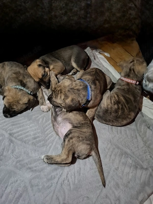 Wir leben mit unserer Mama, bei unserer Pflegefamilie, wo unser Opa auch lebt. Wir sind am 08.03.26 geboren. Hier im Haus leben Kinder, Vögel, Hasen und Meerschweinchen. Es ist alles interessant. Wir lernen so viel wie möglich kennen. Lärm, andere Hunde, Kleintiere, der Umgang mit kleineren Kindern... ...