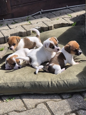 Hallo, wir haben noch 2 Rüden und 1 Hündin in bicolore abzugeben. Es sind jack Russell Welpen kurzbeinig 2 glatthaar und 1 rüde mit etwas längeren Fell. Abgabe ab Mitte Mai ,geimpft, regelmäßig entwurmt, mit Chip und natürlich bestens sozialisiert ( alltagsgeräuche, kinder ,andere tiere und hunde ...
