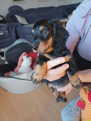 Hallo unsere Zwergdackel Hündin gebeoren am 24.01.2026 ist noch auf der suche nach einer liebevollen Familie für eine bleibe auf Lebzeit der Welpe ist bei abgabe geimpt und gechipt sowie mehrfach Entwurmt und bekommen einen EU -Pass und ist Tierärtzlich untersucht er lebt bei uns im Haus als reine Wohnungshaltung ...