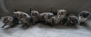 Unsere BKH Dame Luna hat am 31. wunderschöne Kitten zu Welt gebracht. Es sind 6 Mädchen und 5 Jungs Wir haben angefangen Sie mit der 4 Woche mit Kitten nassfutter von Carny zu füttern. Das Kitten trockenfutter ist von Premiere. Ebenso hat man auch schon die ersten Toilettengänge mitbekommen. Die ...