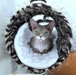 Junges, hübsches Mädchen Lika sucht ein neues liebevolles Zuhause! Sie ist 2 Jahre alt. Sie ist liebevoll, zart, verspielt, kontaktfreudig, mag Kinder und liebt es bei uns im Bett zu schlafen. Wenn Sie weitere junge Katzen haben ist es super. Devon Rex Katzen können alleine nicht leben. Sie brauchen ...