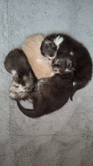 Wir haben Nachwuchs ! 4 reinrassige Maine Coon Kitten creme Kater black-white Kätzin black-smoke Kätzin blue-silver-tabby-white Kater Fotos werden wöchentlich aktualisiert. Mutter: black-tortie-white Vater: black smoke Unsere Kitten dürfen mit 12 Wochen (ab 08. Juni) in ihr neues Zuhause ziehen. ...