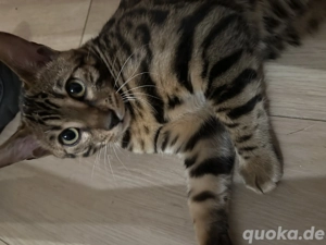 Unsere Bengalkatzen (1 Weibchen, 2 Männchen) suchen ein verantwortungsvolles neues Zuhause. Sie sind gesund, aktiv, menschenbezogen und sehr schön gezeichnet (Rosetten). Infos: geboren: Juli 2025 2 geimpft mehrfach entwurmt gut sozialisiert, kennen Alltagsgeräusche Abgabe nur in verantwortungsvolle ...