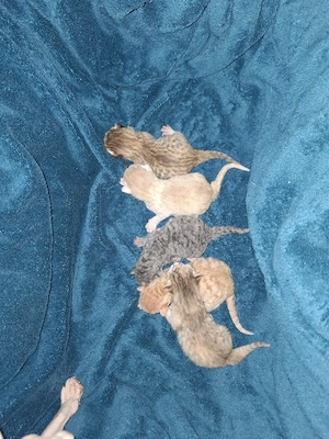Sie sind am 12. Januar geboren. Beide Eltern sind Sphynx und vor Ort. Die Babys sind mit Locken Flaum geboren, ob sie diese noch verlieren kann ich leider nicht sagen, sie sind "Brush" und haben eher Flusen als Fell. Sie sind auf jeden Fall für Allergiker geeignet, da ich tatsächlich eine Katzenallergie ...