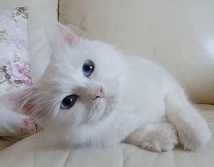 Ein reinrassiger, wunderschöner, schneeweißer Sibirischer Kater mit strahlend blauen Augen und einem FIFe-Stammbaum über fünf Generationen. Geboren am 28. August 2025, ist er geimpft, entwurmt, gechipt und kastriert. Er hat Geschwister. Bei ernsthaftem Interesse kontaktieren Sie mich bitte telefonisch. Die ...
