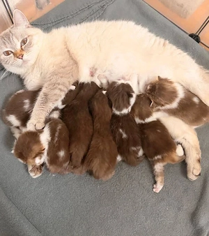 Am 01.03.26 haben wir wunderschöne Kitten bekommen.Unsere Kitten (Mix Siam BKH EKH ) sechs Buben und sechs mädel gehen jetzt schon aufs katzenklo,trinken und essen Nass sowie Trockenfutter .Gerne dürfen die kleinen ab jetzt besucht und gegen Anzahlung reserviert werden.Bei Auszug sind sie dreifach ...
