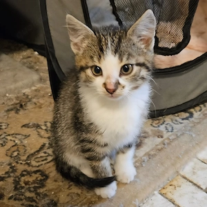 Gebe ein süsses Katzenkind ab. Geboren am 14.1.26 Futterfest und geht sicher auf die Katzentoilette