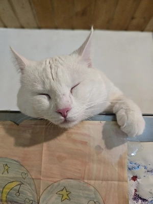 Leider müssen wir uns von unserem wunderschönen weißen Kater trennen. Er ist 1 Jahr alt und heißt Ghost. Sein größtes Interesse ist es natürlich zu Kuscheln, es gibt nichts schöneres für ihn. Er liebt es zu spielen, am liebsten mit einer Schnur. Ghost ist Taub aber das schränkt ihn in keiner Weise ein. ...