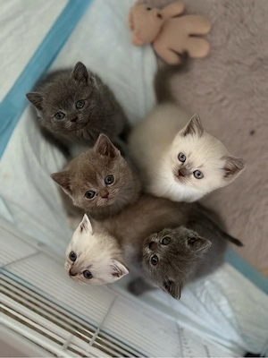 Süße Britisch Kurzhaar Kätzchen, geboren am 04.03.2026. Die Kleinen sind aktuell noch bei ihrer Mutter und können ab sofort besichtigt und fest reserviert werden. Die Abgabe erfolgt erst mit 12 Wochen (ab Ende Mai), wenn sie futterfest, geimpft und entwurmt sind. Die Eltern leben bei uns. Bei Interesse ...