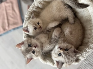 Unsere Britisch Kurzhaar Katze hat wunderschöne Kitten zur Welt gebracht, die ab Januar in ein liebevolles neues Zuhause ziehen dürfen. Die Mutter (grau, orangefarbene Augen) und der Vater (weiß, blaue Augen) leben beide bei uns im Haushalt. Beide sind reinrassige BKH und haben einen ruhigen, verschmusten ...
