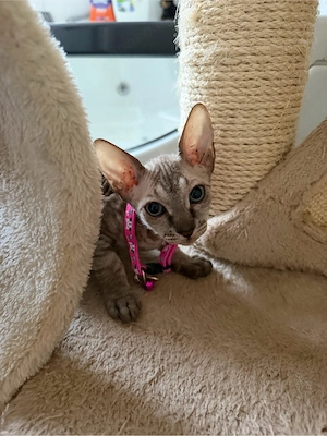 Wir geben eine wunderschöne Don Sphynx Katze ab, die aus der liebevollen Zucht einer Freundin in Italien stammt. Geboren am 15. Februar, ist die Kleine ab Anfang Juni bereit, in ihr neues, liebevolles Zuhause zu ziehen. Das Kätzchen wird bei Abgabe: - gegen Tollwut geimpft - gechipt - mit Stammbaum ...