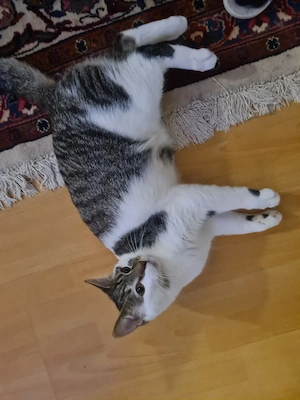 Der Kater ist 1 Jahr und 2 Monate alt, nicht kastriert und nicht geimpft aber er ist komplett gesund und hat auch keine Angst vor Menschen aber sehr Neugierig, die Spielzeuge und sein Futter können wir alles mitgeben.