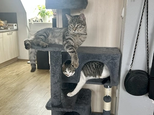 Ich muss mich schweren Herzens von meinem beiden Katern trennen da meine kleine Tochter eine tierhaarallergie entwickelt hat. Sie sollen möglichst zusammen abgegeben werden, da sie auch zusammen aufgewachsen sind. Sie sind im April 1 Jahr alt geworden.. Sie leben sowohl drinnen wie draußen.