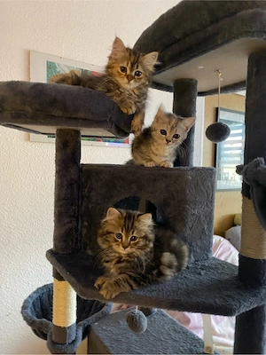 wir haben noch 2 Mädels zu haben , sind jetzt 3 Monate alt und dürfen ausziehen. Am 23.12.2025 sind wir geboren Auf dem ersten Bild ganz unten war unser Bruder der schon ein schickes zu Hause gefunden hat. ein kurzhaar und ein Langhaar Mädchen sind ganz lieb und suchen auf diesem Weg ein neues schönes ...