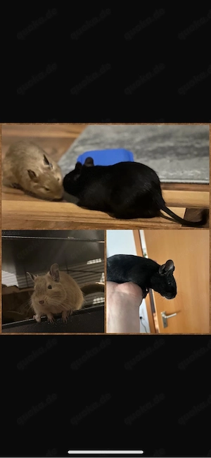 Ich gebe meine beiden Degus schweren Herzens aus persönlichen Gründen ab. Die Entscheidung fällt mir nicht leicht, daher ist mir ein wirklich passendes Zuhause sehr wichtig. Die beiden sind ca. 1 Jahr alt, tierärztlich untersucht und gesund. Sie leben zusammen und werden ausschließlich gemeinsam abgegeben, ...