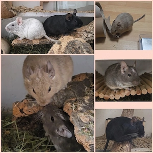 Wir dürfen uns auf tollen Degunachwuchs freuen. In unserer kleinen Hobbyzucht achten wir auf verantwortungsvolle Verpaarungen, Zuchtpausen und das Wohl unserer Tiere. Wir verbringen viel Zeit bei und mit unseren Tieren, um zutrauliche, gesunde Degus großzuziehen. Unsere Elterntiere sind gesund, ...