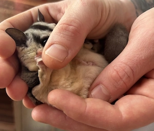 Im Beutel kann man schon ein kleines Schwänzchen und ein Pfötchen erkennen