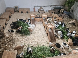 2 Meerschweinchen mit großem Holzstall (Habau)