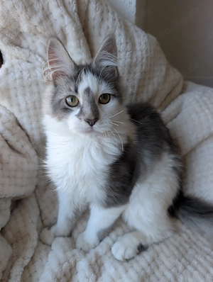 Unsere wunderschöne Reinrassige Maine Coon Katze Zara ist am 10.11.2025 geboren und sucht ab sofort ein liebevolles Liebhaber Zuhause auf Lebenszeit. Zara trägt eine ausgefallene Farbe blue ticked white und ist sehr schön gezeichnet. Sie ist unseres zartes liebes Püppchen. Zara ist sehr neugierig und ...