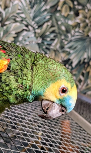 Voliere mit Blaustirnamazone zu verkaufen