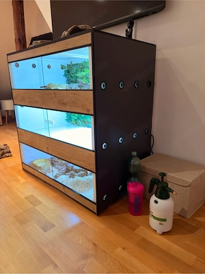 Verkaufe mein PVC-Terrarium 3er-Stack in den Maßen 100 x 60 x 100 cm (B x T x H). Das Terrarium besteht aus 3 einzelnen Ebenen mit jeweils: 100 cm Breite 60 cm Tiefe ca. 33 cm Höhe Alle 3 Terrarien sind identisch ausgestattet mit: je einem 90-W-Heatpanel je einer LED-Beleuchtung Thermostat ...